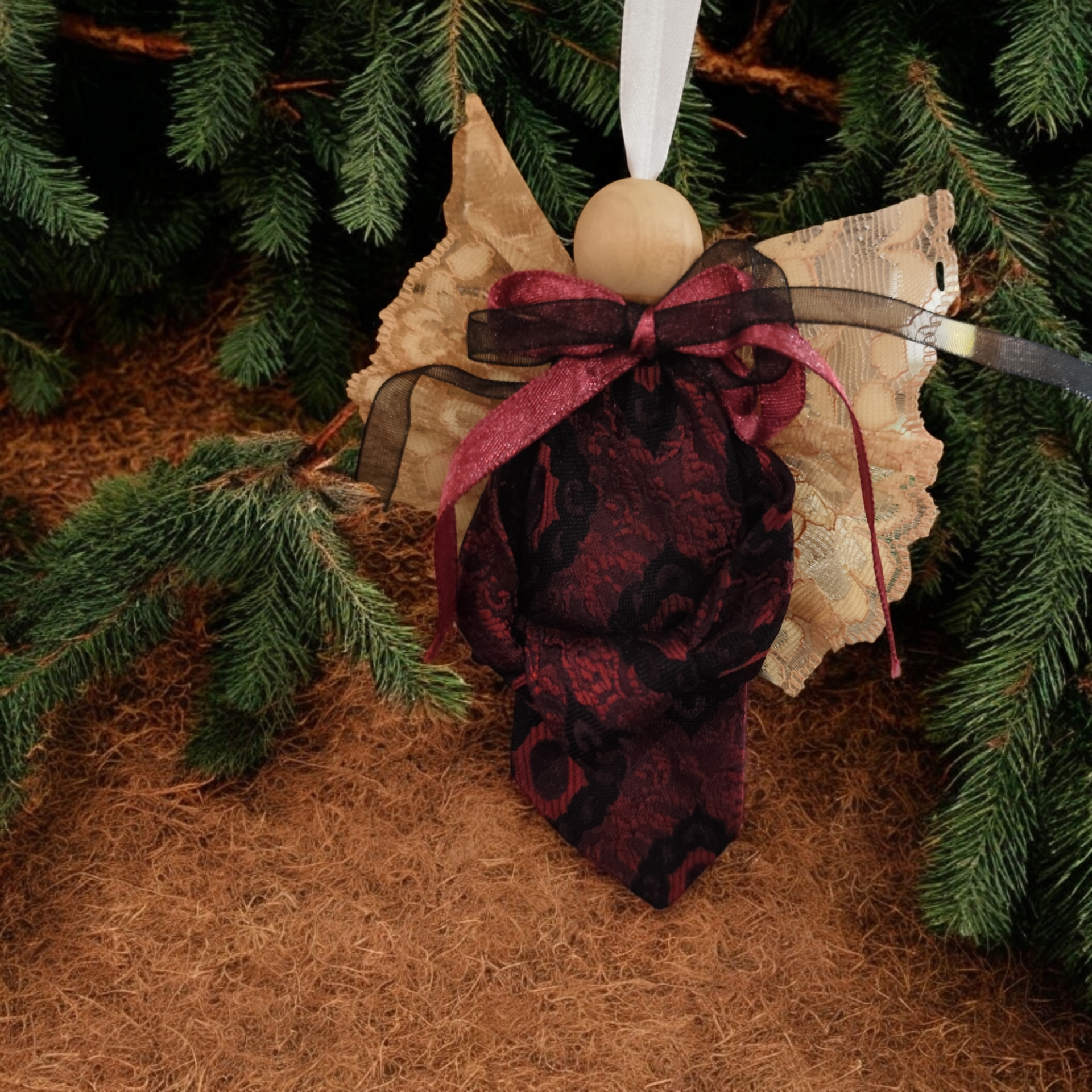 Ängel tillverkad av den breda änden av en slips. Ängelns längd är ca 12 cm