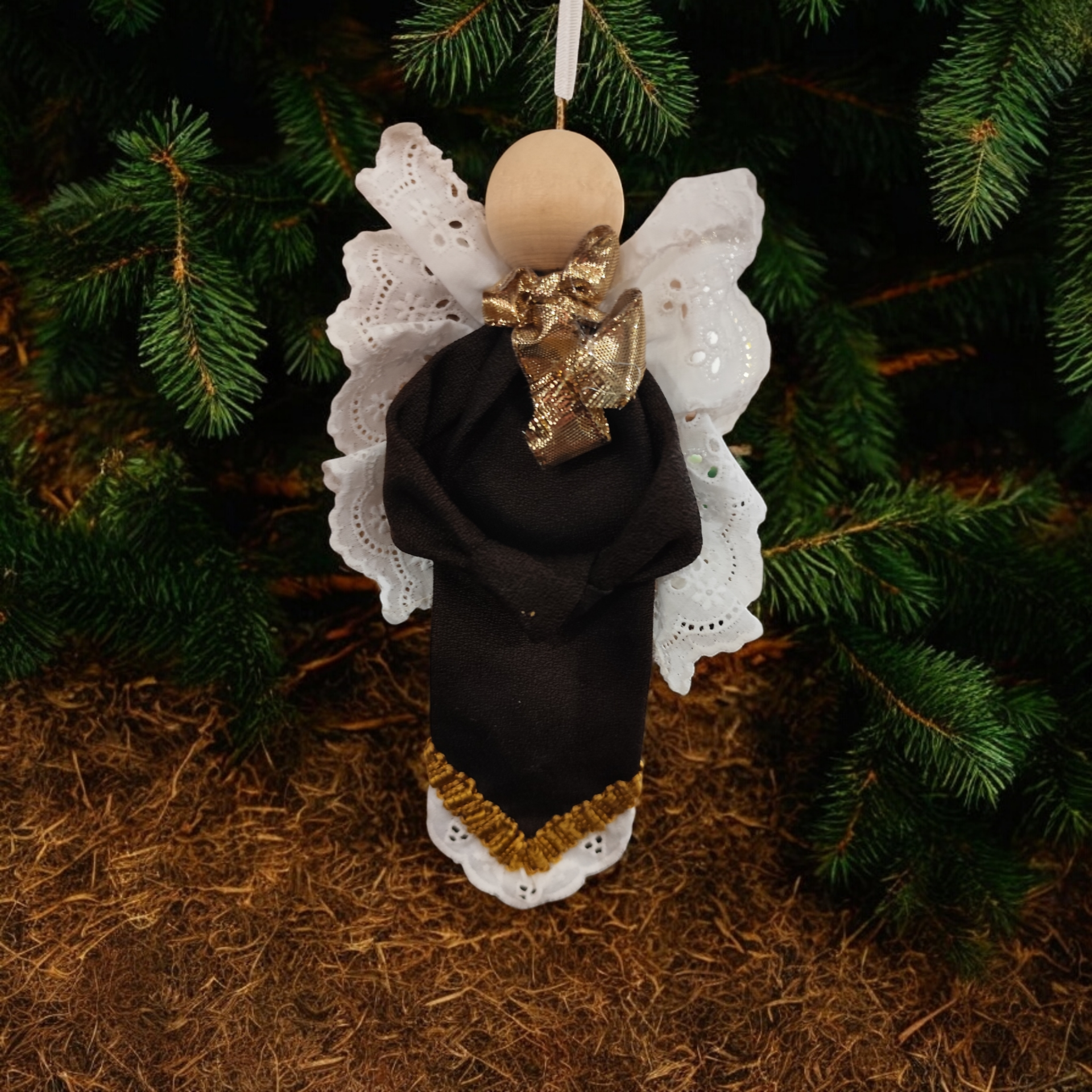 Ängel tillverkad av den breda änden av en slips. Ängelns längd är ca 20 cm