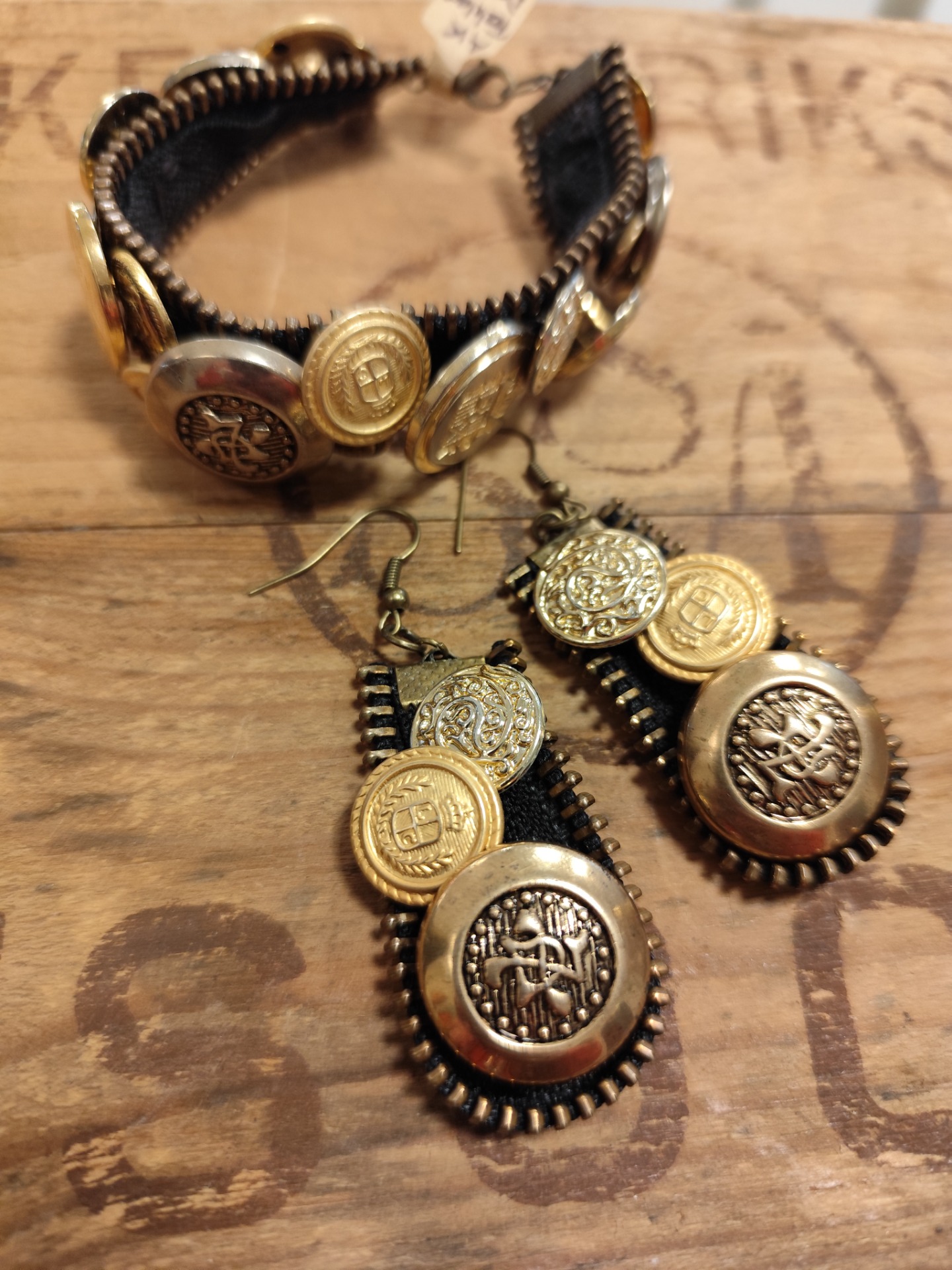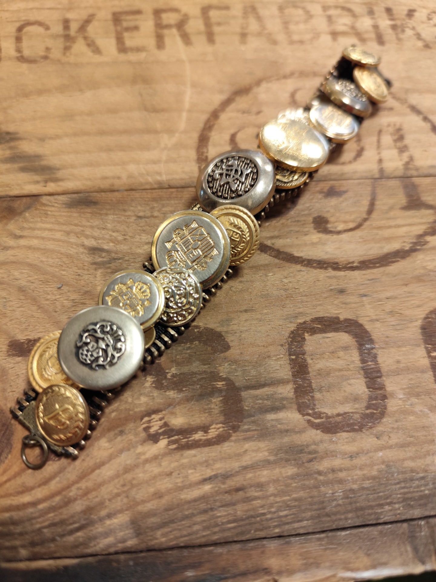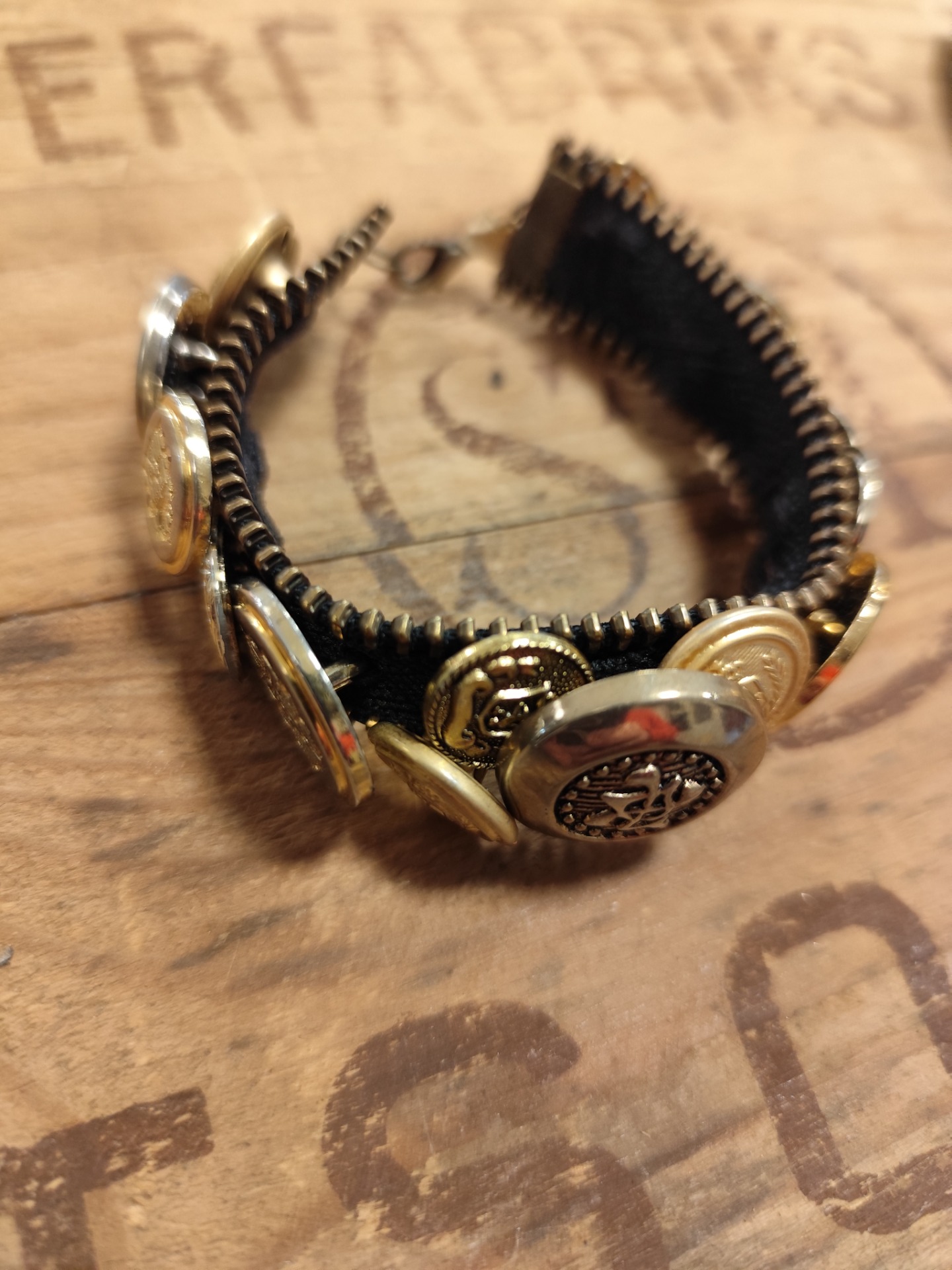 Armband av dragkedja med knappar. Längd 19,5 cm. Matchande örhängen kan ev finnas. Se örhängen.