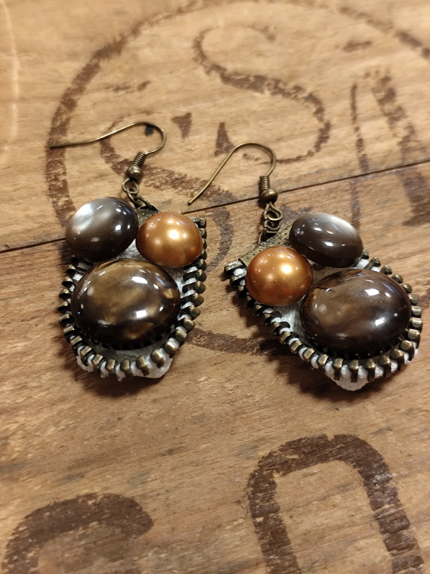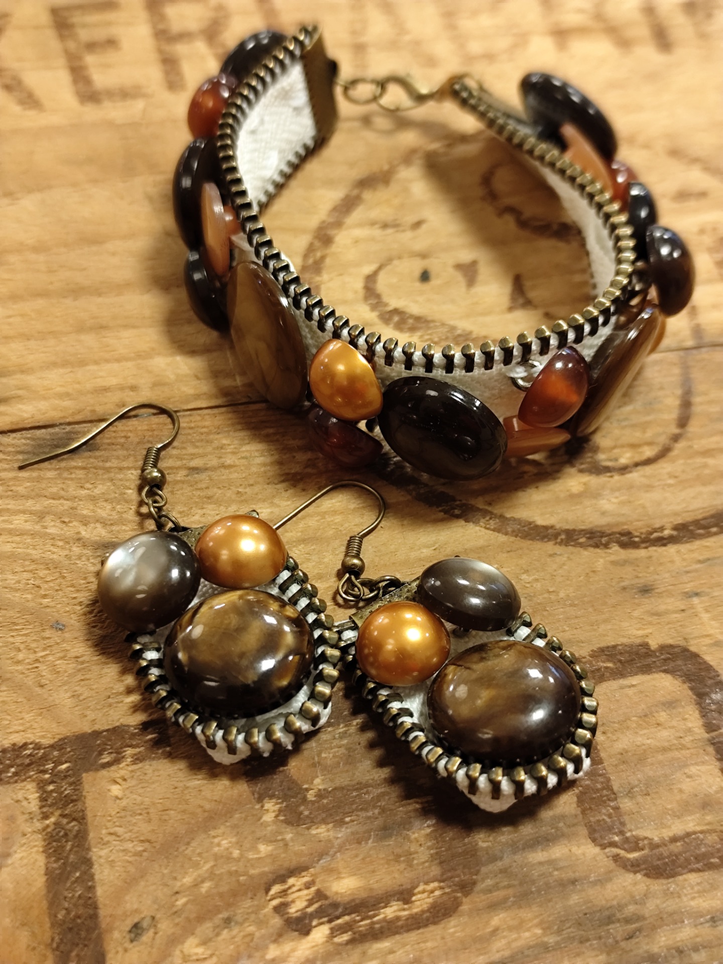 Örhängen av dragkedja med knappar. Längd 5,5 cm. Matchande armband kan finnas. Se armband.
