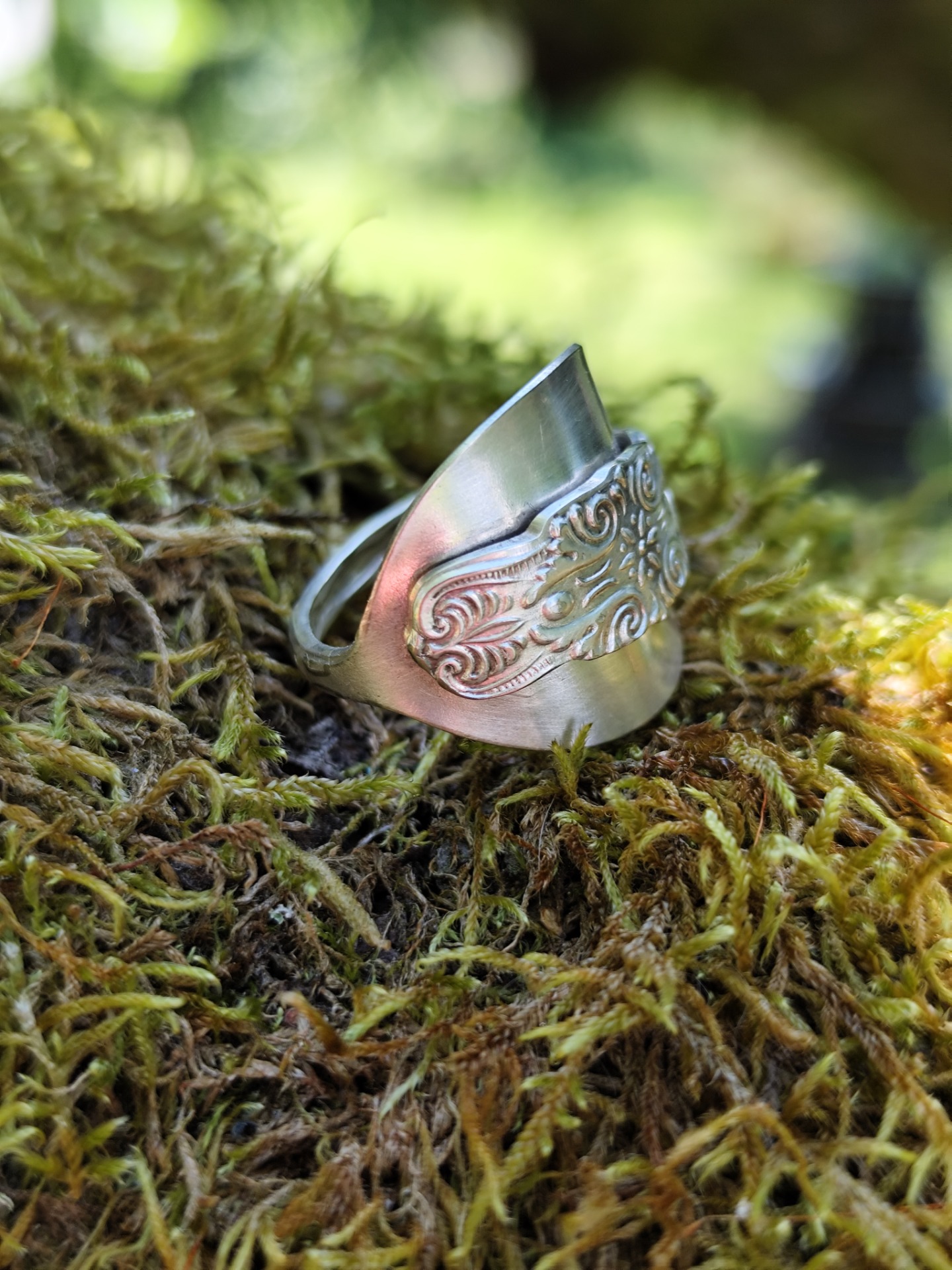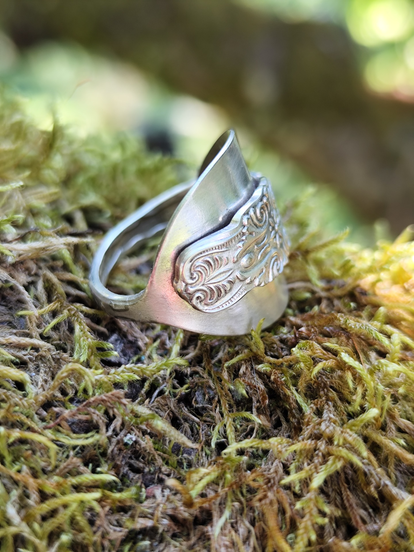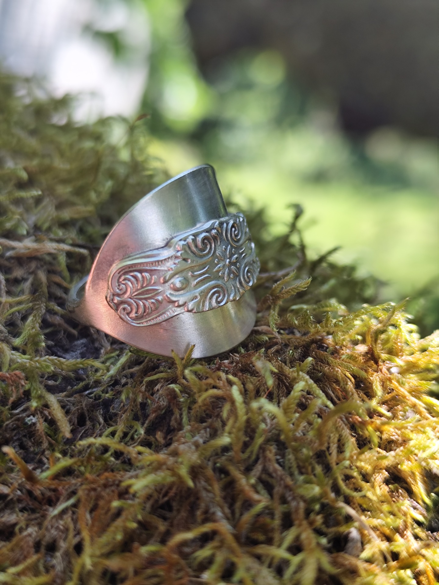 Ring av sked i nysilver. Storlek 9, diameter 19 mm, omkrets 60 mm