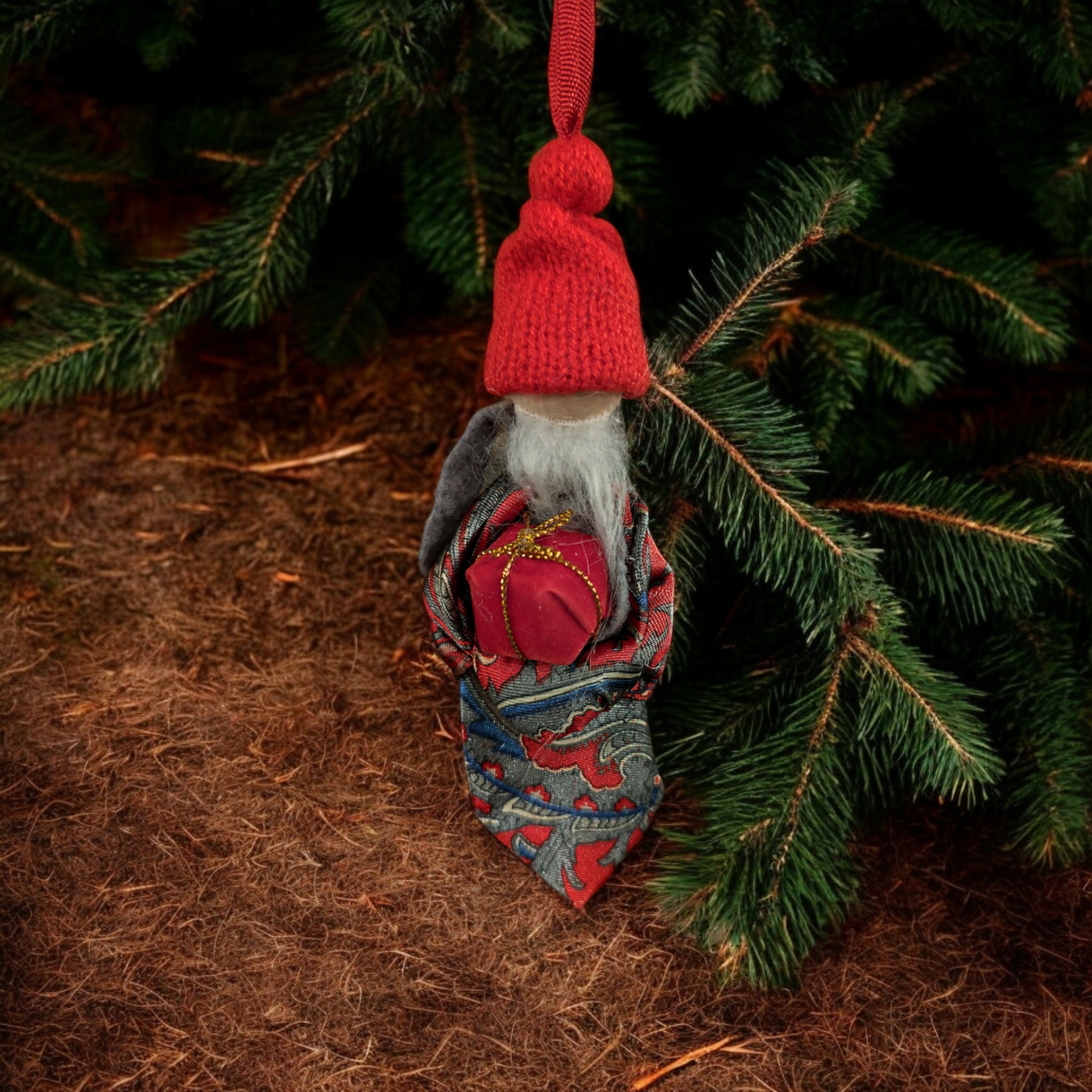 Tomte tillverkad av den smala änden av en slips. Tomtens längd är ca 16 cm