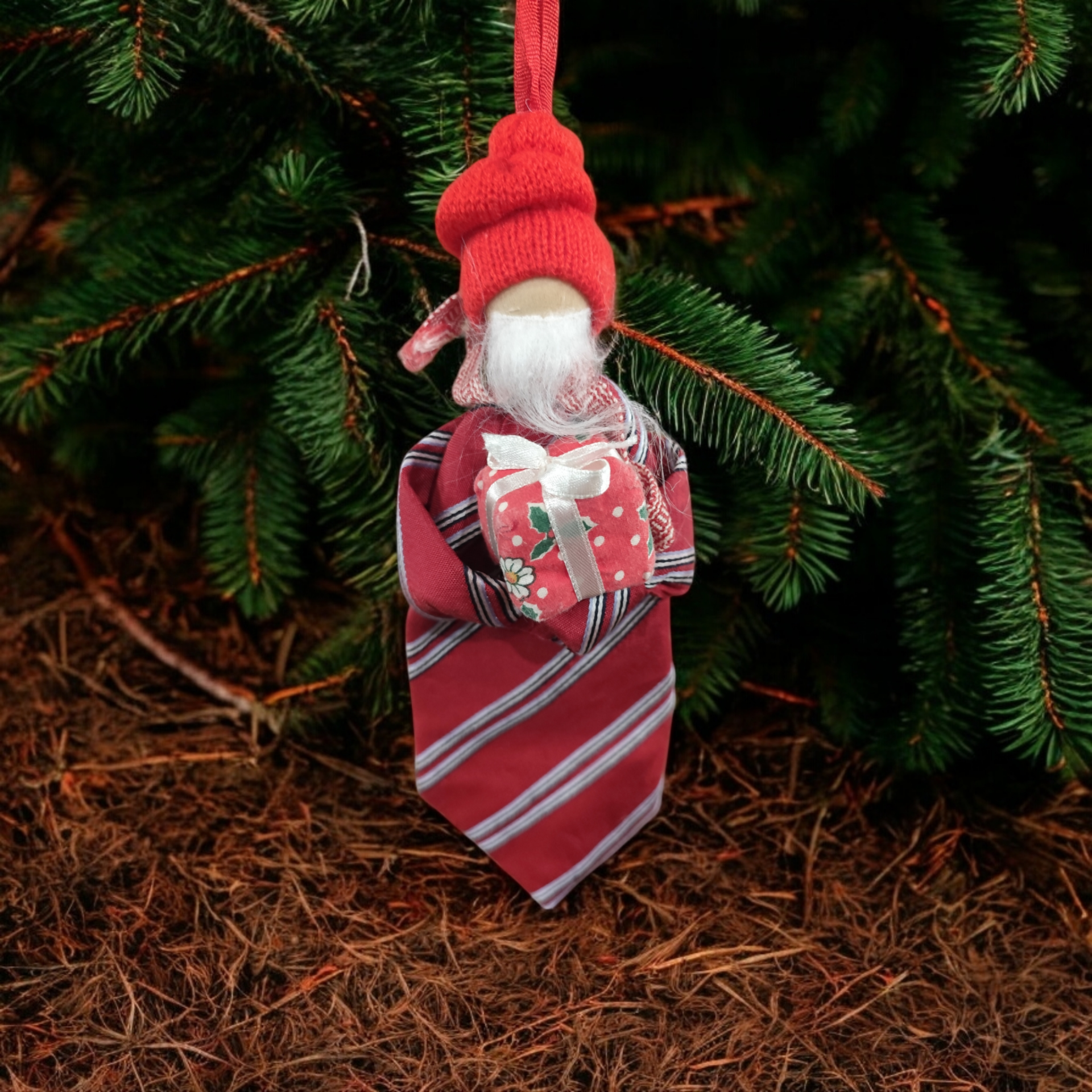 Tomte tillverkad av den breda änden av en slips. Tomtens längd är ca 27 cm